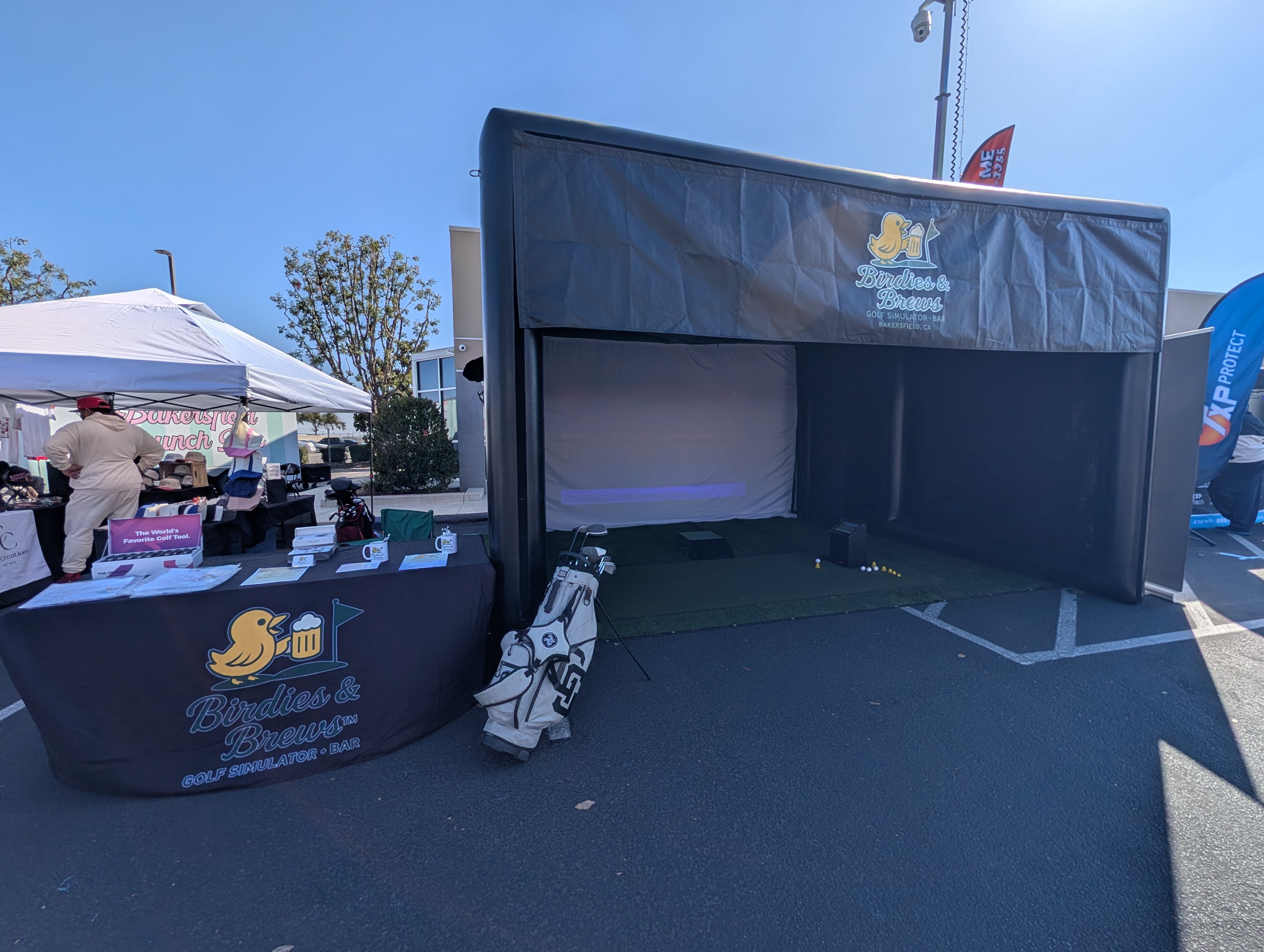 Welcome to Birdies and Brews — Kern County’s premier mobile golf simulator experience. Whether you’re throwing a party, hosting a wedding, planning a fundraiser, or organizing a corporate event, we bring the excitement of the golf course directly to you.Our setup features a state-of-the-art 16’x16’ inflatable golf enclosure, standing 10 feet tall, powered by the ultra-accurate Garmin Approach R50 with GSPro software for stunningly realistic gameplay. Indoors or outdoors, we transform any space into a fully immersive golf environment that’s perfect for beginners, enthusiasts, and seasoned pros alike.But we’re more than just a simulator—we’re an unforgettable experience. With options like beer-inclusive packages, fun golf-themed games like putter pong and chip pong, and branded merchandise available for purchase, Birdies and Brews is tailored to make every event feel custom, energetic, and one-of-a-kind. Based in Bakersfield, we proudly serve Kern County and surrounding areas including Fresno County, Tulare County, Kings County, Inyo County, San Bernardino County, Los Angeles County, Ventura County, Santa Barbara County, and San Luis Obispo County.From casual gatherings to upscale celebrations, we deliver top-tier entertainment with professional service and unforgettable vibes.Let’s tee it up—anytime, anywhere.